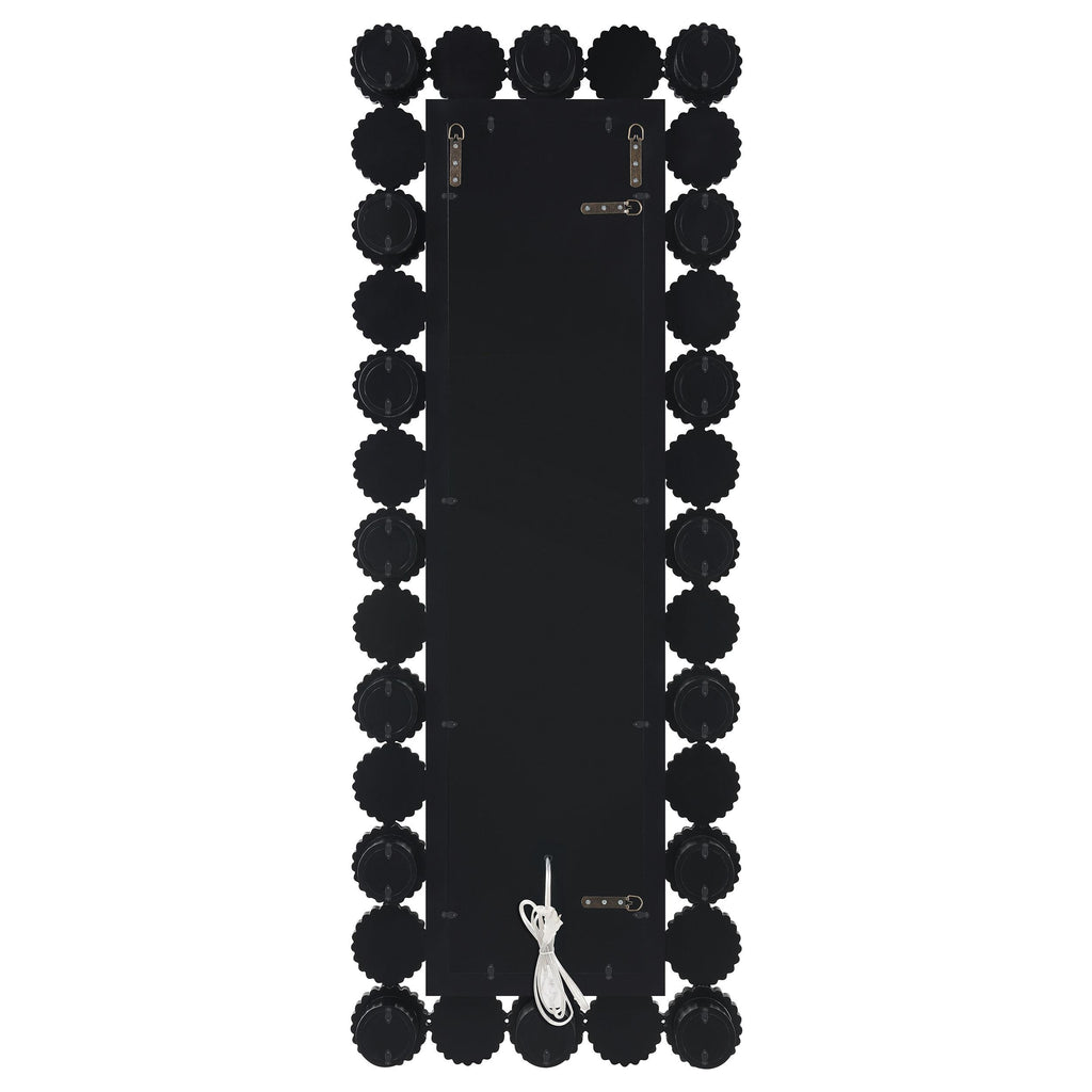 • A row of rounded mirror pieces contrast nicely with the rectangular shape of the mirror