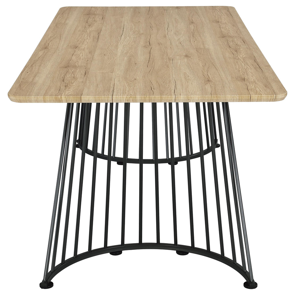 • Table top is a natural, rustic oak grain, made of engineered PVC laminate for ease of care; perfect for busy homes