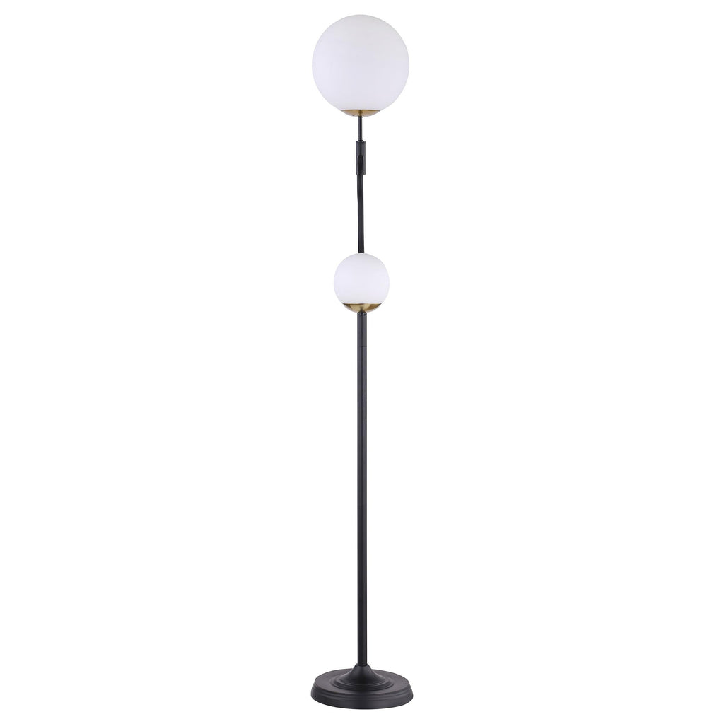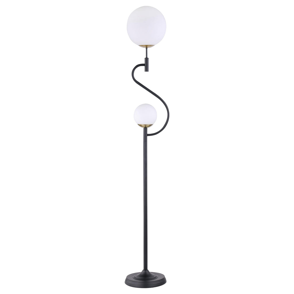 • Modern curves highlight energy efficient lights in a modern two-light floor lamp