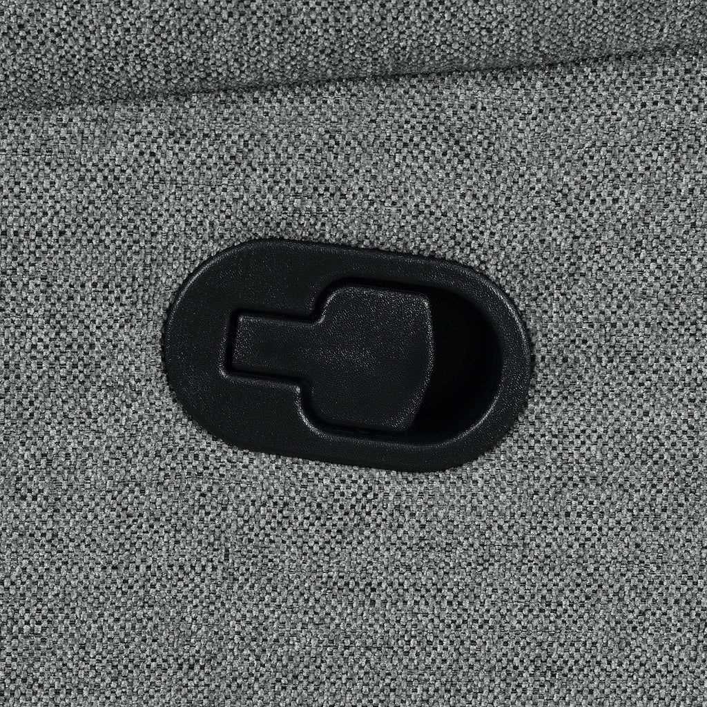 • Three-piece motion sectional upholstered in a smoke performance fabric