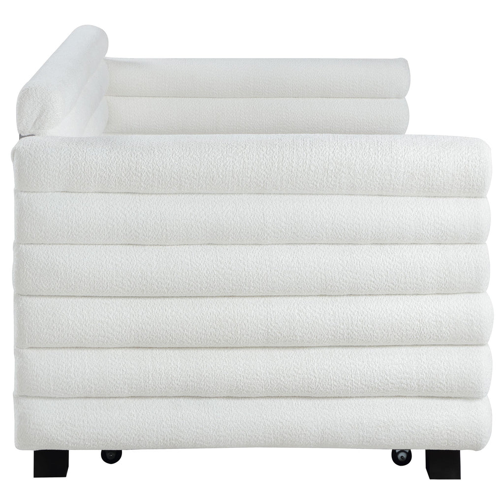 • Boucle upholstery is an ultra-modern upgrade, lending rich texture and character