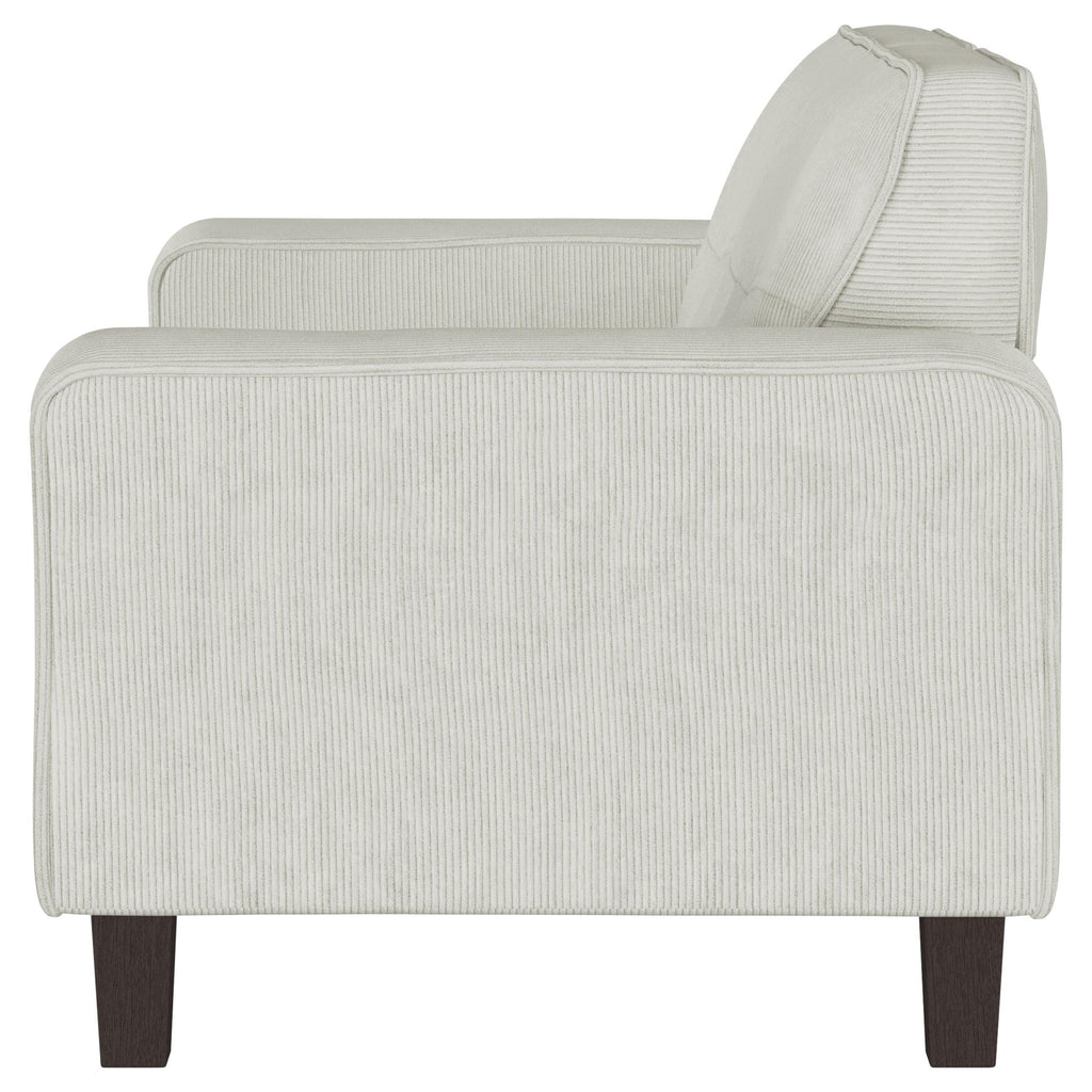 • Textured corduroy-style upholstery is extra plush for a cozy and inviting touch
