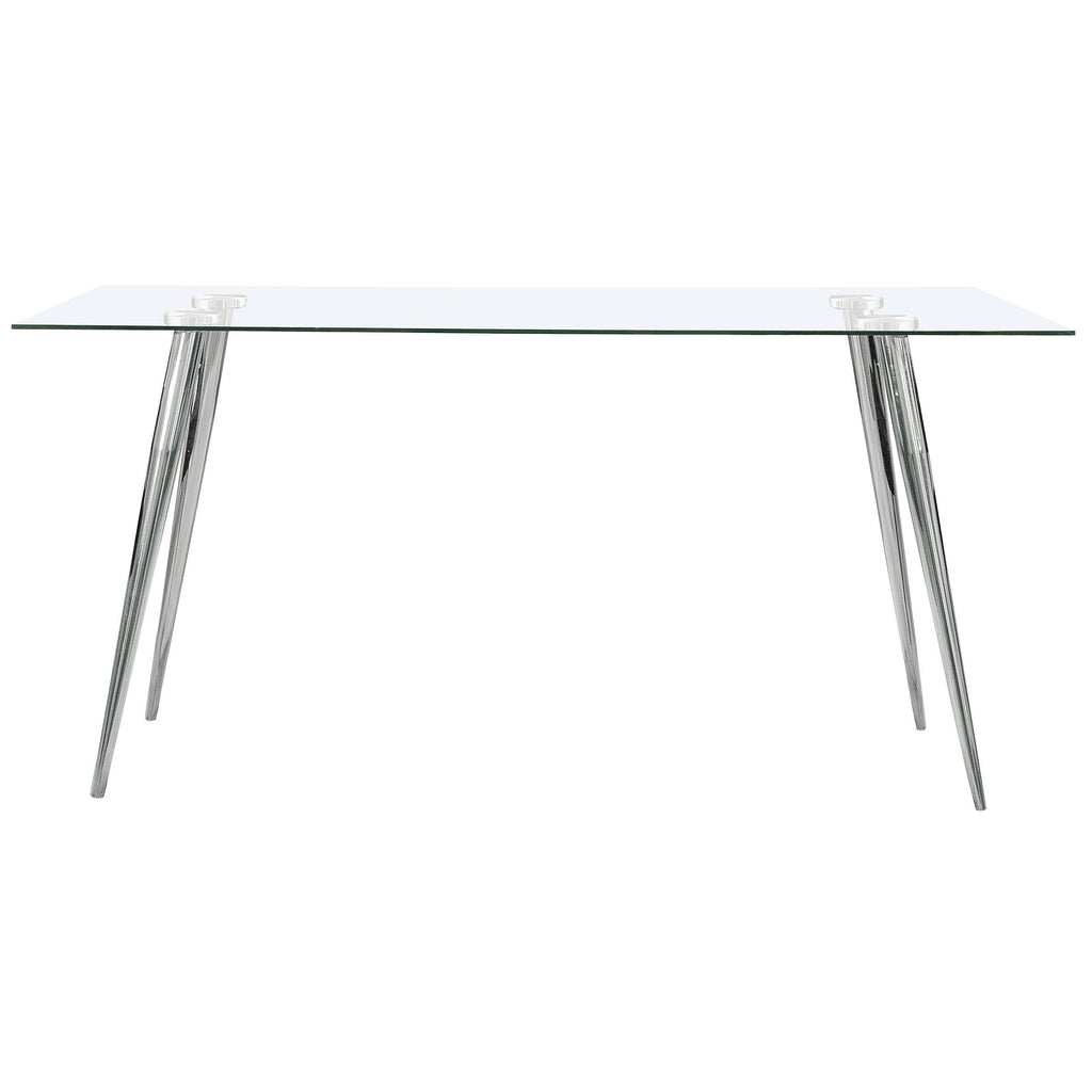 • Create your own contemporary dining space with our floating dining table, where the glass top seems to float atop round tapered chrome metal legs