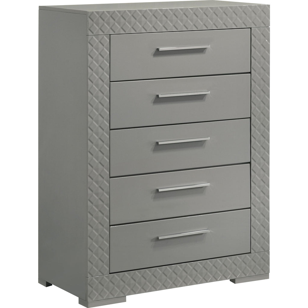 Coaster Furniture Ives 224975 5-Drawer Bedroom Chest of Drawers - Grey High Gloss
