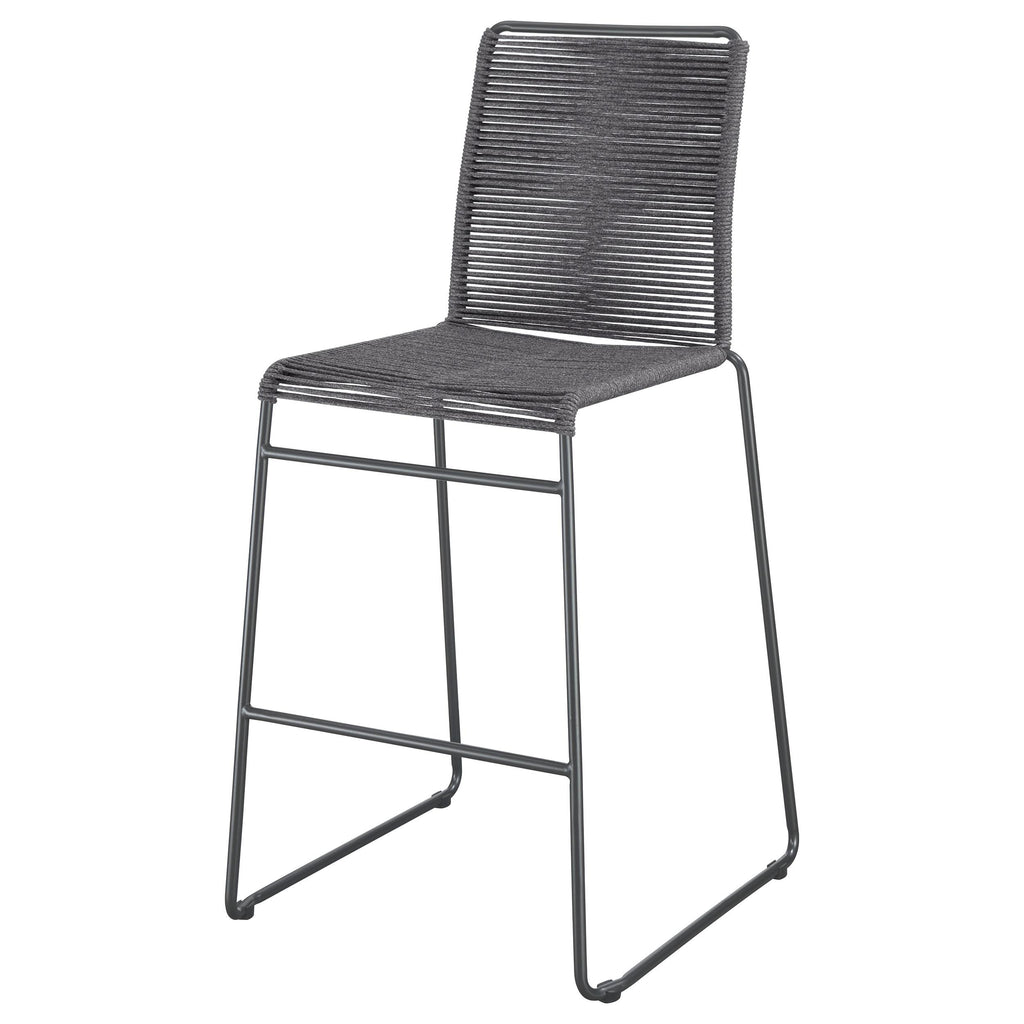• Create a restful spot with a tall and slender metal frame in a gunmetal finish, wrapped in charcoal tone rope around the backrest and seat