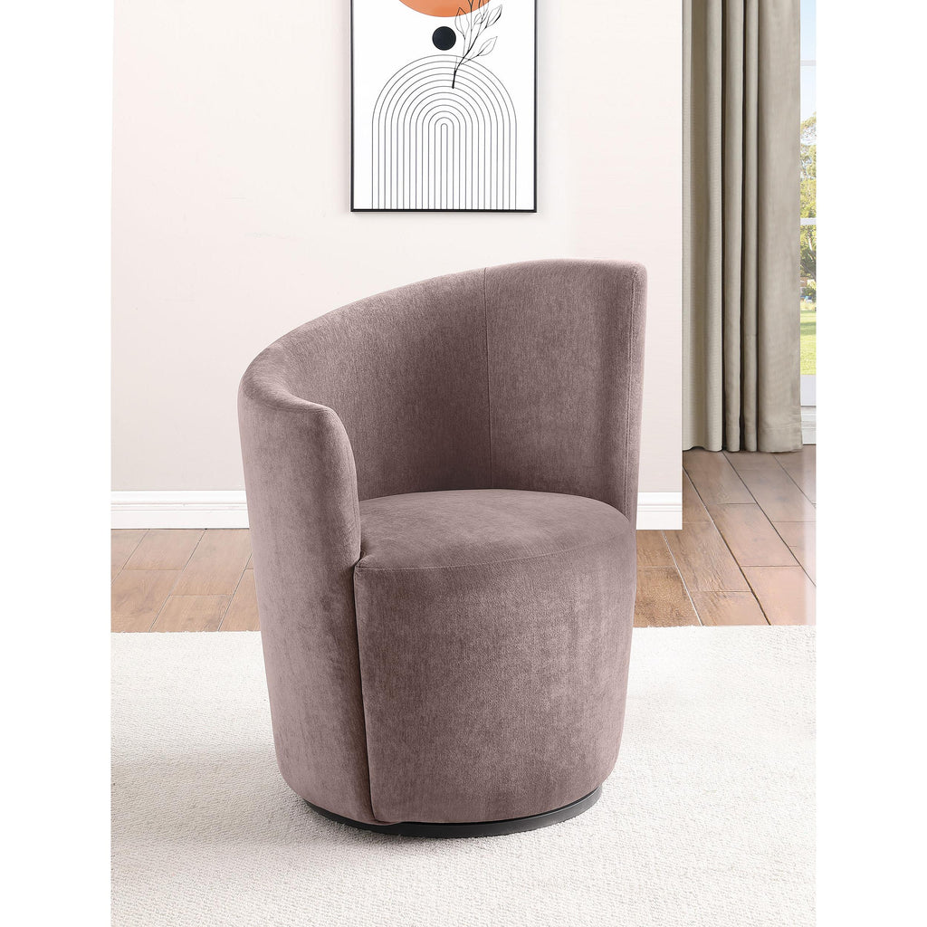 • Plush blush pink velvet upholstery lends a rich, tactile appeal