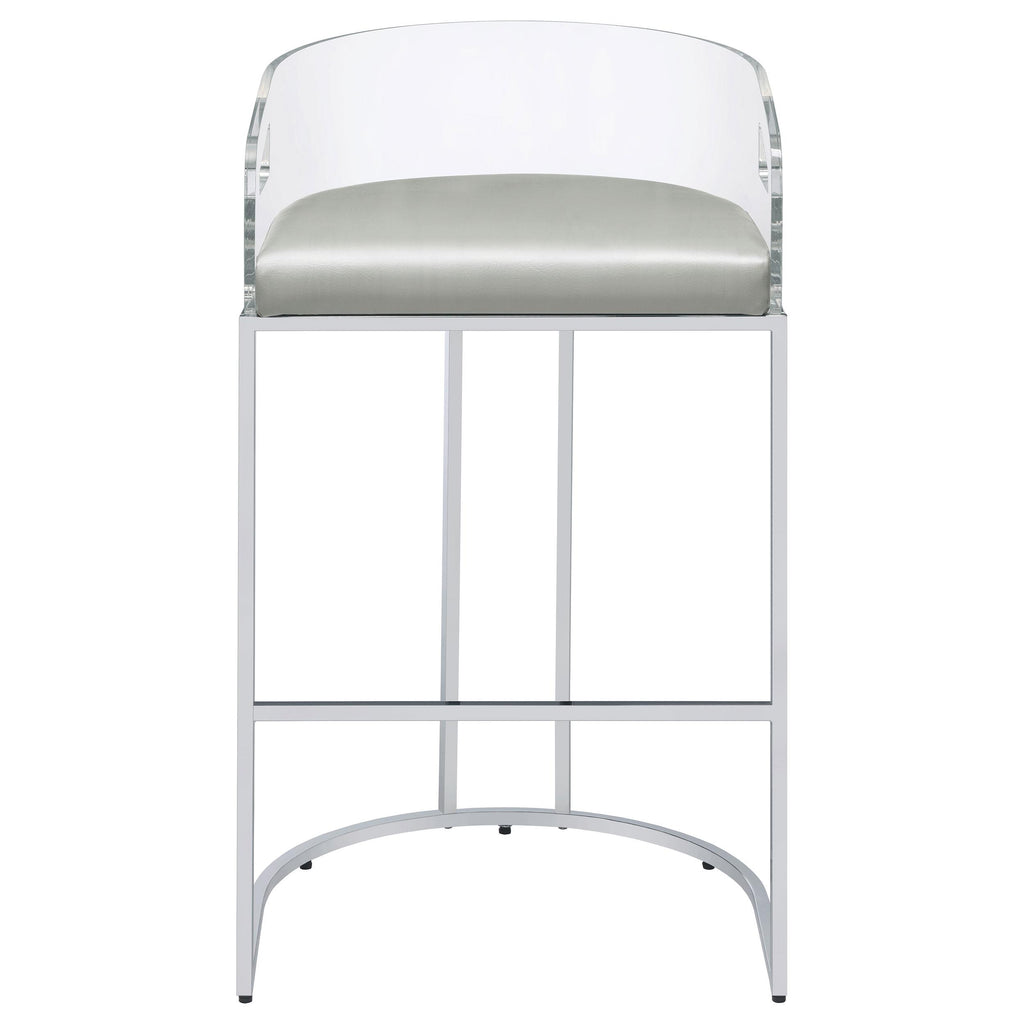 • Ultra-modern with a retro-inspired vibe, these stools feature a curved backrest in clear acrylic and leatherette cushion for comfort