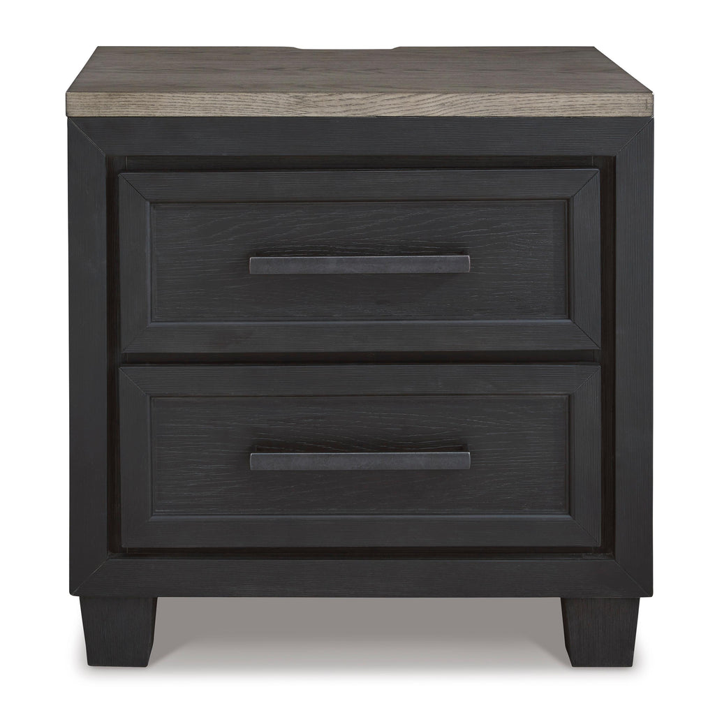 • Two-tone finish (brushed black and dusty grayish brown wood tone)
