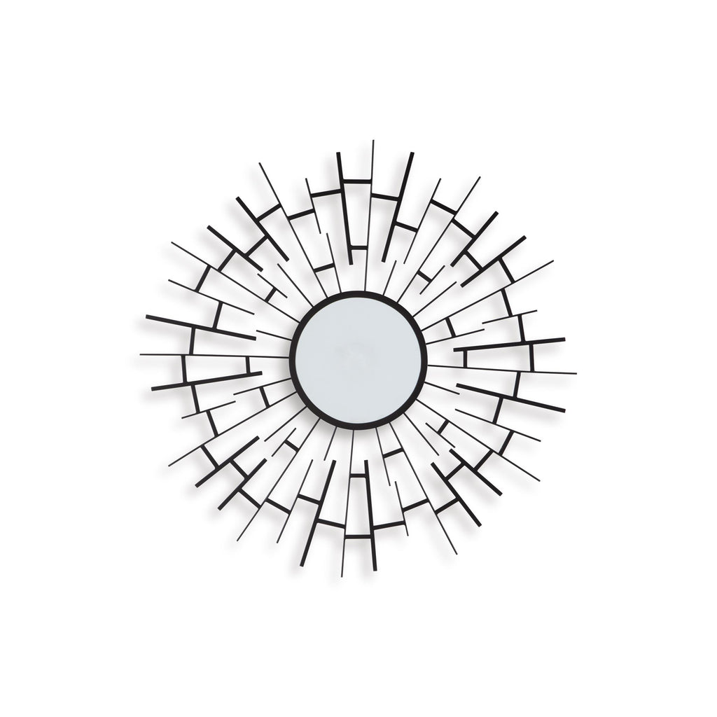 This accent mirror makes a bold statement in contemporary and industrial spaces. Framed with sunburst-style metal fretwork and finished in a luxe black, it's a... This accent mirror makes a bold statement in contemporary and industrial spaces. Framed with sunburst-style metal fretwork and finished in a luxe black, it's a fabulous blend of form and function. View more