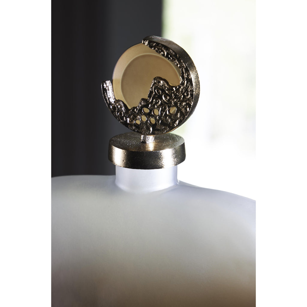 Bring stately elegance home with this jar. Made with frosted glass in a luxurious taupe finish, its ombre effect adds visual intrigue to a shelf... Bring stately elegance home with this jar. Made with frosted glass in a luxurious taupe finish, its ombre effect adds visual intrigue to a shelf or mantle. A textured goldtone topper provides an added dose of traditional flair. View more
