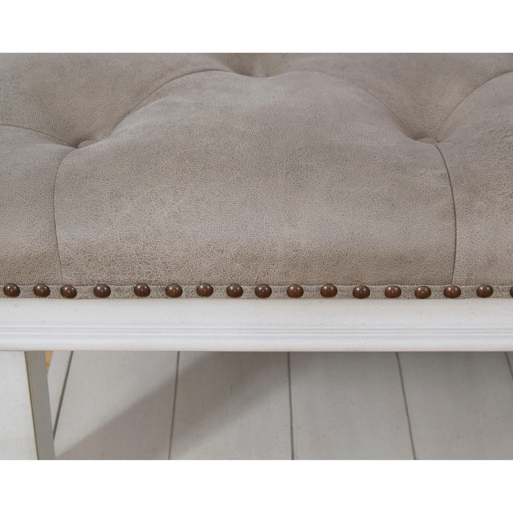 Ideal as a footrest or coffee table stand-in, this ottoman coffee table adds an all-purpose farmhouse touch to your living space. Crafted with comfort and... Ideal as a footrest or coffee table stand-in, this ottoman coffee table adds an all-purpose farmhouse touch to your living space. Crafted with comfort and convenience in mind, this square ottoman features a faux leather button tufted seat with nailhead accents. Enhancing its casual appeal, a handy lower shelf houses throws, reading material and other essentials. View more