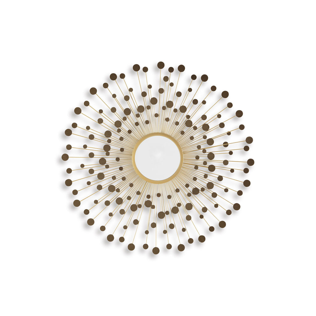 Light and bright, this accent mirror is a trendy take on wall decor. Its metallic spokes splay outward to create a sculpture-like frame. With goldtone... Light and bright, this accent mirror is a trendy take on wall decor. Its metallic spokes splay outward to create a sculpture-like frame. With goldtone and bronze-tone finishes, the piece is a reflection of your eye for contemporary design. View more