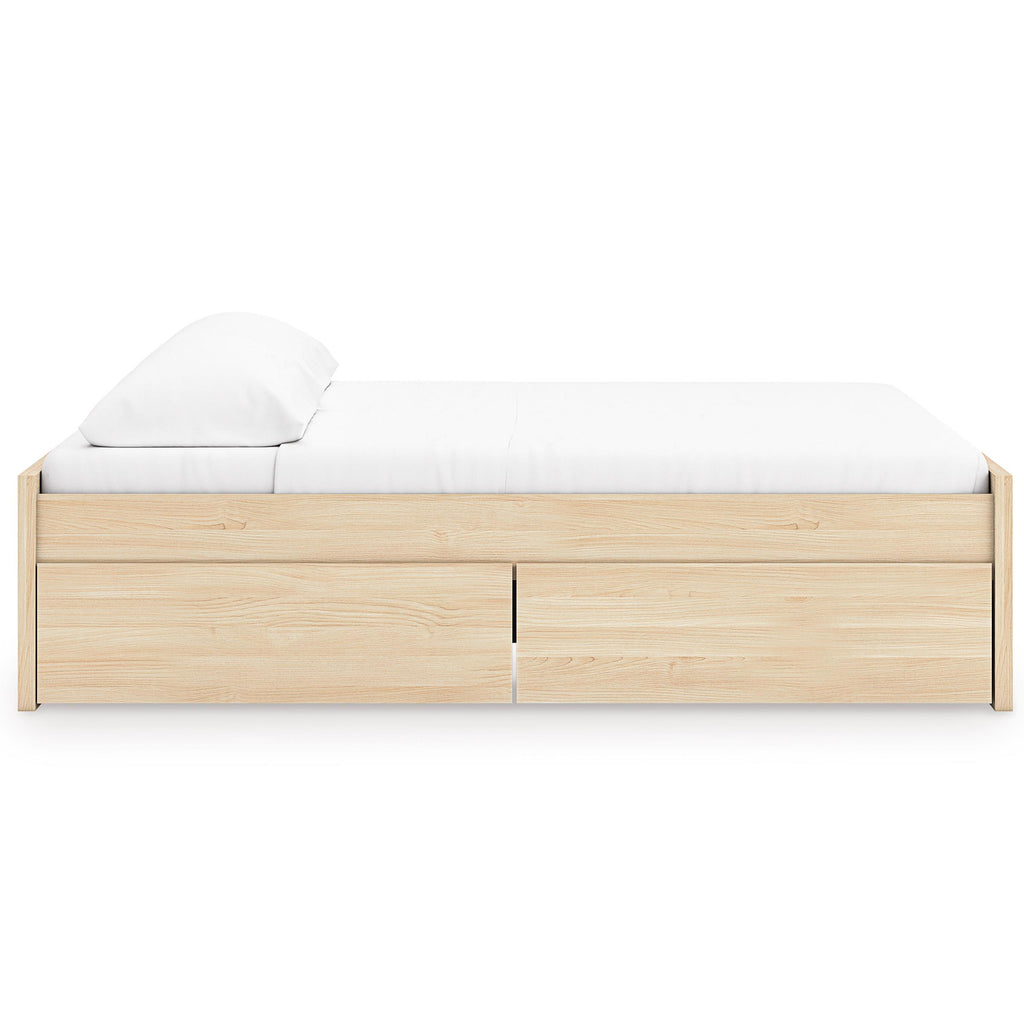 • Includes platform bed panels, platform rails, roll slats and 2 side storage drawers