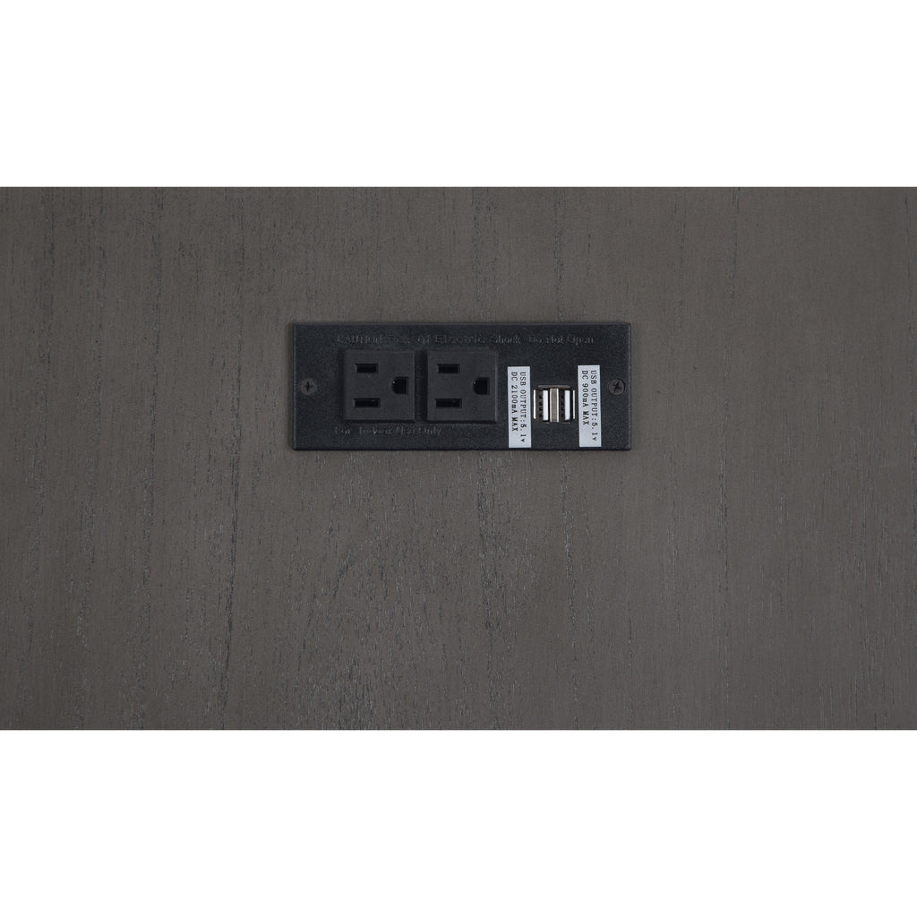 • Table features storage cabinet, open cubby shelf and pull-out tray